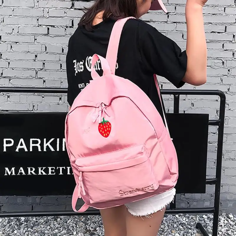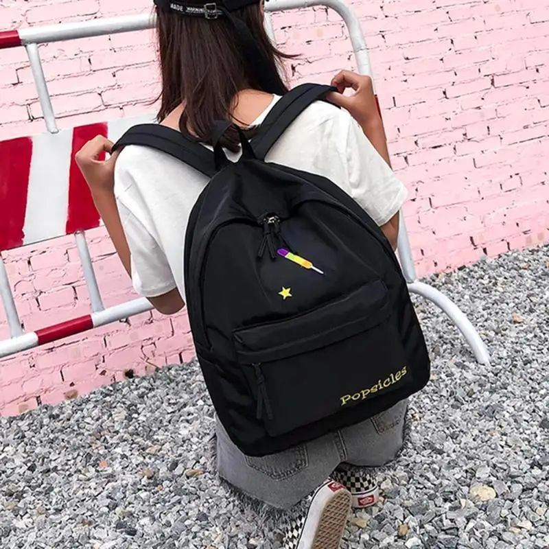 Zipper Cute Cartoon Embroidery Women Nylon Backpacks Teenage Girls Preppy Style Shoulder School Bags Features: The fashion version of the type:concise but not simple, high-grade Nylon material,extraordinary quality; Exquisite design: generous, simple fashion; Easy to carry: Breakthrough cumbersome,Handy convenient. Specifications: Material: Nylon Size: 38 X 31 X 12cm/14.96 X 12.2 X 4.72" Use: Backpack Style: As shown Color: Black,pink,light pink,yellow Notes: 1. Due to the different monitor and light effect, the actual color of the item might be slightly different from the color showed on the pictures. Thank you! 2. Please allow 1-3cm measuring deviation due to manual measurement. 1 X Backpack |