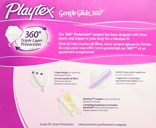 Product Description 360 protection all around comfort. Playtex Gentle Glide tampons have a unique design that opens equally all around. You can rely on protection and incredible comfort. 0