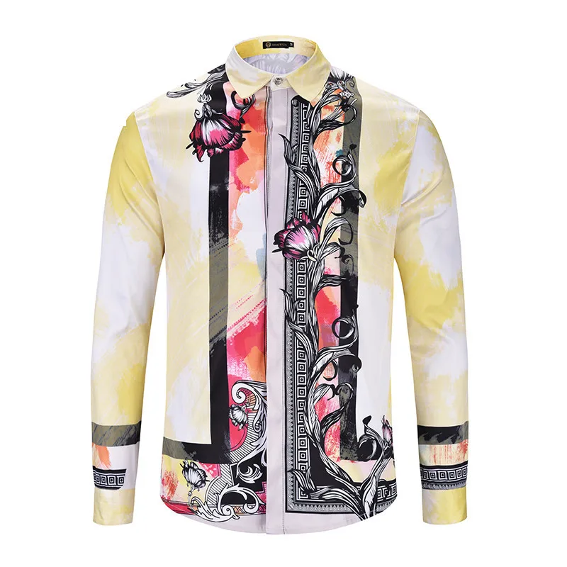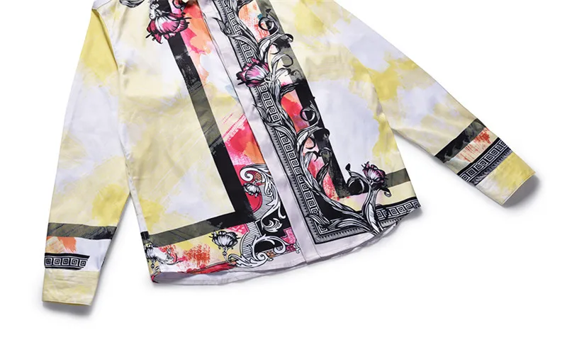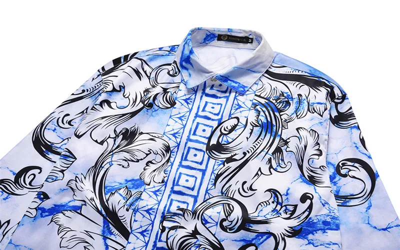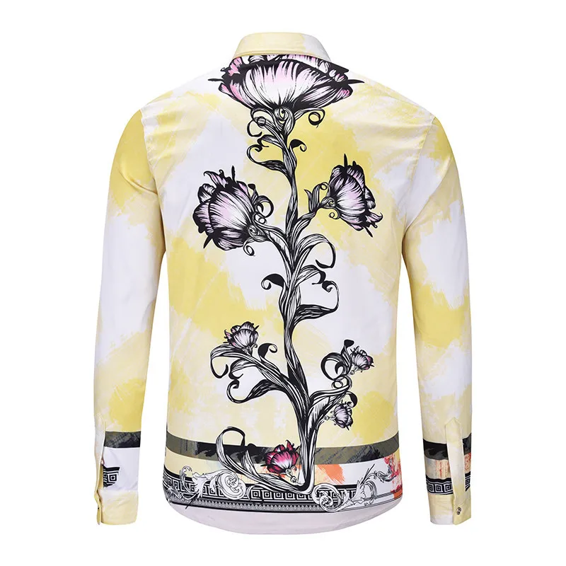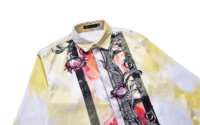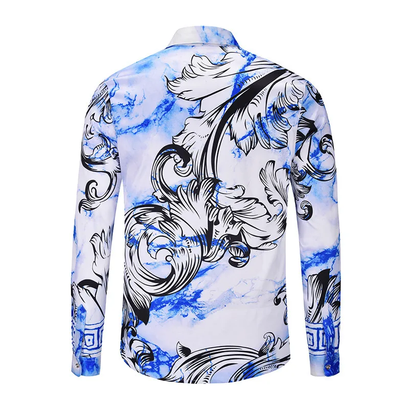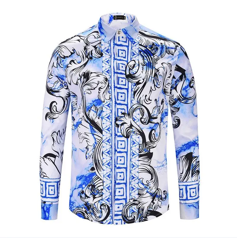 5:Fashion Design Printed Men Slim Fit Shirt Chemise Homme Long Sleeve