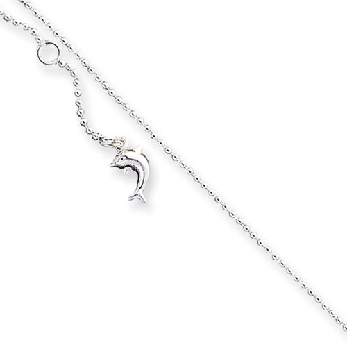 Let this playful sea creatures delight you and others as it swings around your ankle. Created from polished sterling silver and features a 10mm puffed dolphin at the end of 1mm beaded chain that adjusts in length from 9 to 10 inches. A spring ring clasp keeps it safely fastened to your leg. Made in the U.S.A.Feature