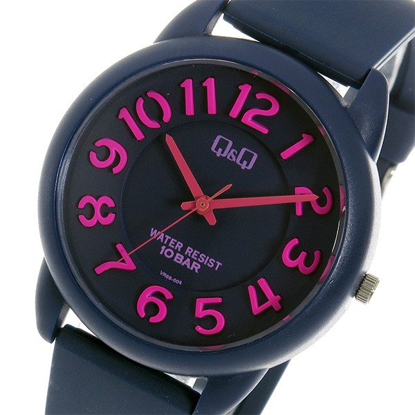 クオーツ、10気圧防水、カラー:ネイビー(文字盤)、ネイビー(ベルト)、ピンク(インデックス)