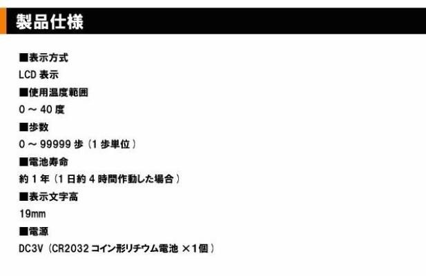 | 設定いらずで簡単に使い始める事ができます。文字高19mmの大型表示でとっても見やすく、バッグに入れたままでもカウントする「3Dセンサー」を搭載しています。 |
