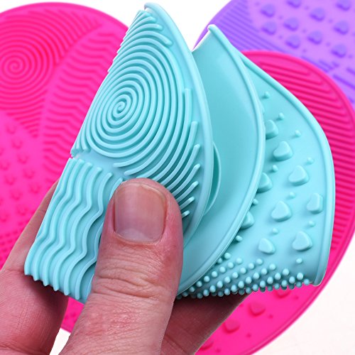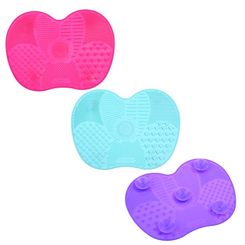 Beautyflier Pack of 3 Silicone Makeup Brush Cleaning Pad Cosmetic Brushes Cleaner with Suction Cup Washing Scrubber Board Cleaning Mat Tool (Apple Shaped)