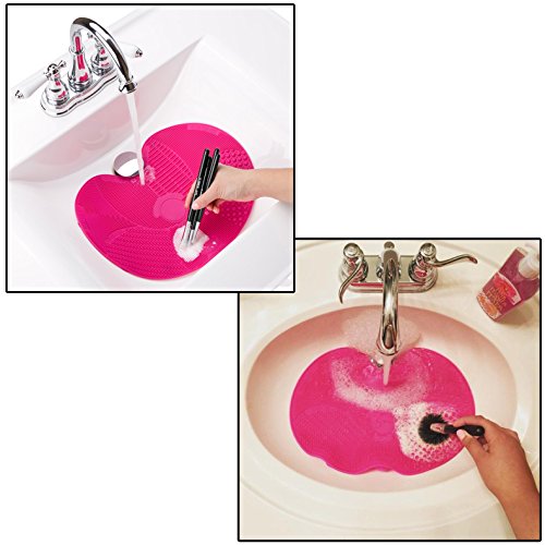 - 7 kinds of different textures, 5 back suction cups design fits most sinks, strong adsorption, set free your hands, just pour some washing fluid on the mat, then rinse the brush off