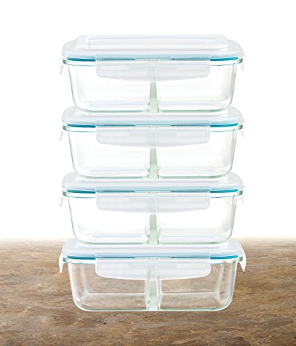 Healthy Glass Meal Prep Containers Set With Lids – 2 Compartment Meal Prep Containers 4 Pack