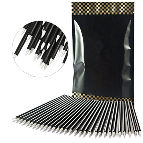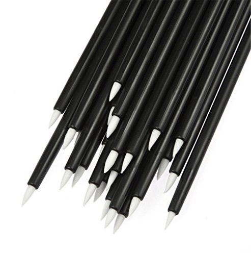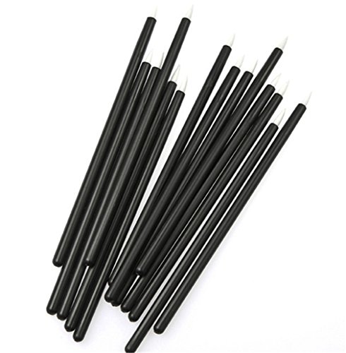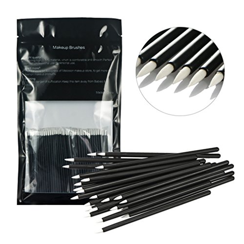 The eyeliner brush material : Handle : hard plastic; Hair : soft fibre, the brush head can be bend slightly. Package content : 100 pcs disposable eyeliner brushes.