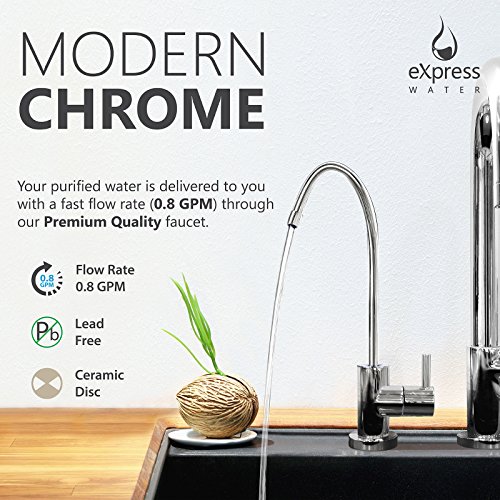 Express Water RO10MX 5 Stage Home Drinking Reverse Osmosis Water Filtration System, 100 GPD RO Membrane Filter, Modern Chrome Faucet, Extra Set of 4 Filters, BPA Free