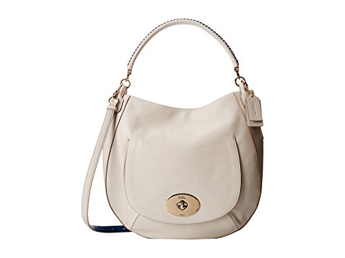 COACH CIRCLE HOBO IN POP LACING WHIPLASH LEATHER HANDBAG 35409 CHALK/DENIM