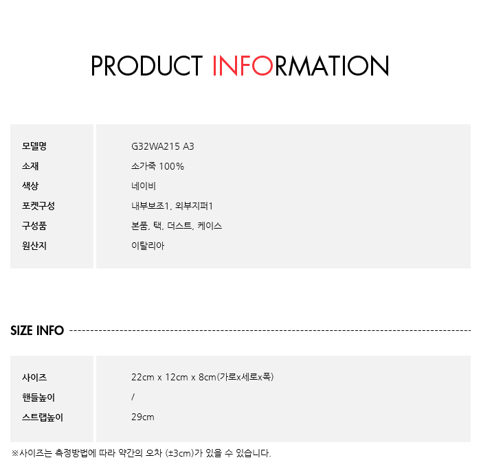 사이즈사이즈 : 22cm x 12cm x 8cm(가로x세로x폭)