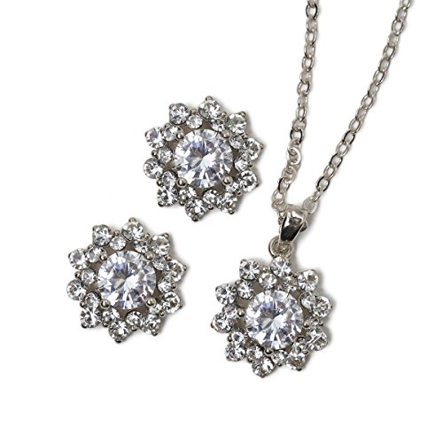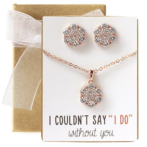 Bridesmaid jewelry gift Cubic Zirconia Necklace and Earring Set. The perfect gift to thank your bridesmaids or bridal party for being a part of your wedding day! They will not only be impressed by how sparkly and amazing the quality is, but will also love it's gift packaging. Proudly made in U.S.A. With proper care, will not tarnish!