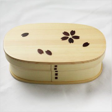 -. Title : お弁当箱曲げわっぱ 桜柄 小判型 白木 600cc