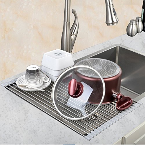 Saving Space: Unroll the dish rack over the sink to provide you more space for your dishes, glassware or pots and fruit and so on. Rolls up for easy storage