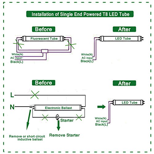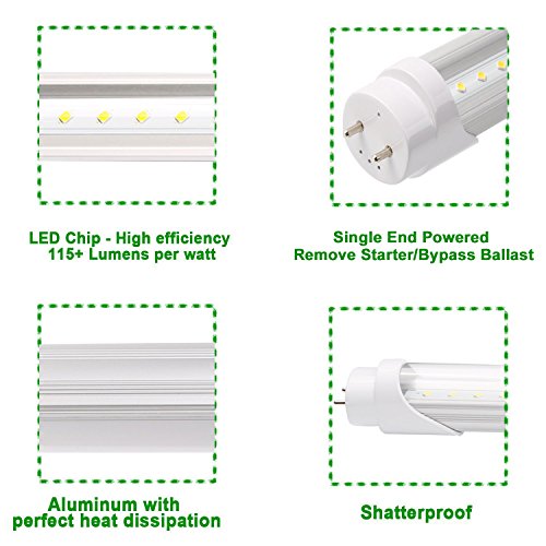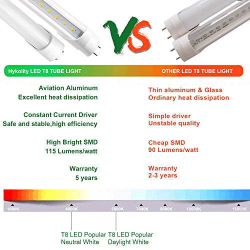 Hyolity 4' T8 T10 T12 18W LED Tube Light [40W Fluorescent Equivalent] 1980lm 5000K Clear Lens Cover Single-End Powered Fluorescent Tube Retrofit Replacement ETL and DLC Listed-Pack of 6