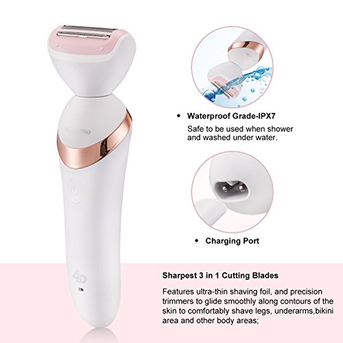 Women Shaver, [Elegant Design] 3 in 1 Waterproof Electric Lady Shaver/Razor/Facial Cleansing Brush/4D Massager Body&Face Perfect for Face,Leg,arm&Bikini...