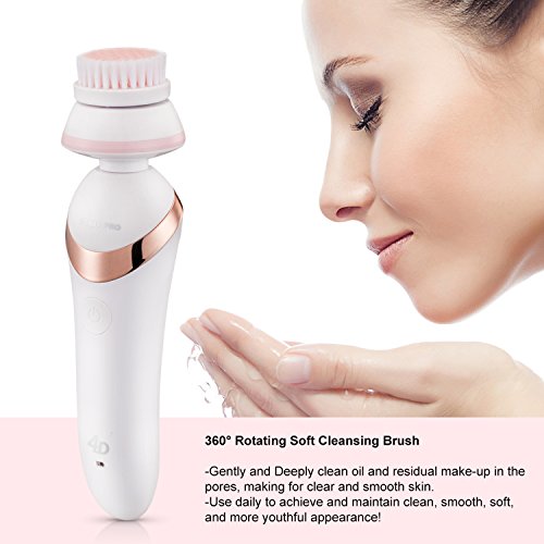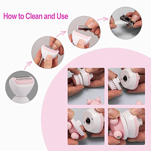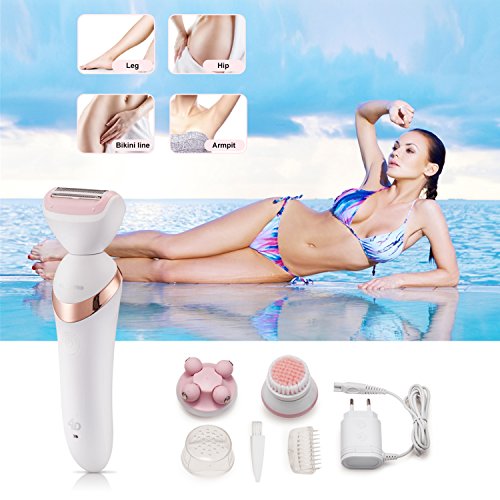 ALL IN ONE BODY CARE SYSTEM: Including shaver, facial cleansing brush and massager. Women shaver can remove unwanted hair easily. Facial cleansing brush help to deeply clean and remove the pores of toxins, makeup&bacteria and 4D massager will relieve the aging, skin tightening effectively.