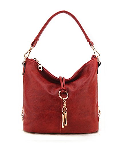 -. Title : Hoxis Chic Tassel Faux Leather Hobo Slouch Zipper Bucket Womens Shoulder Handbag