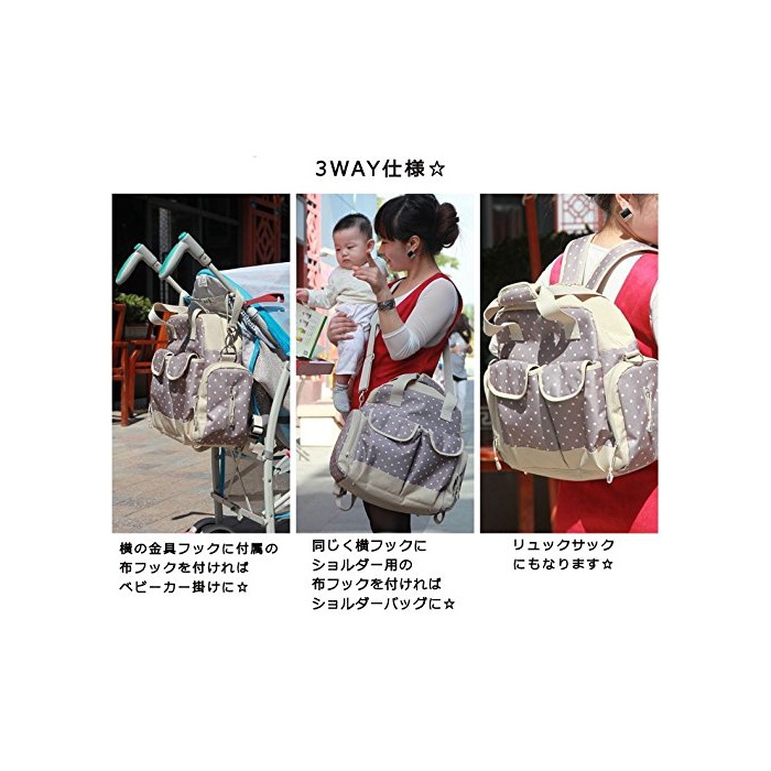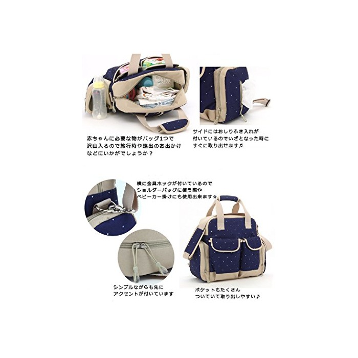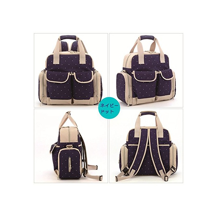 원본상품명: 【Cien Flor】 ドット マザズバッグ 大容量 セット 多機能 3way ベビカ おしりふき 哺乳 バックパック リュックサック ショルダバッグ 爪やすり付き☆