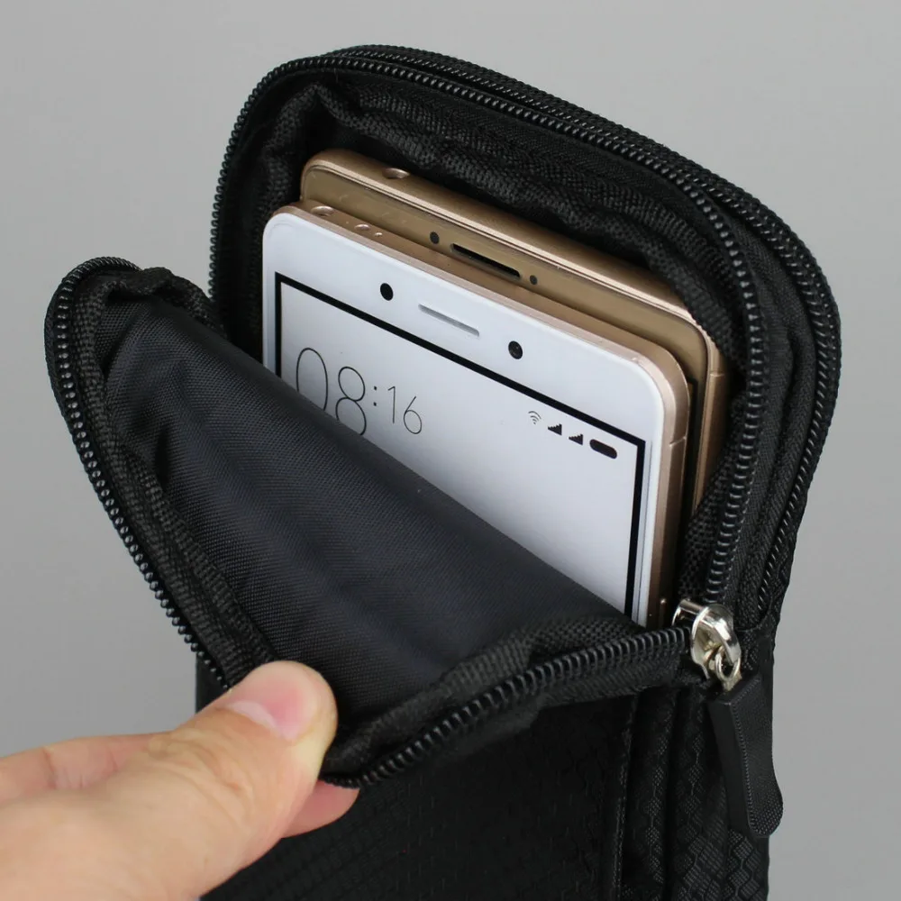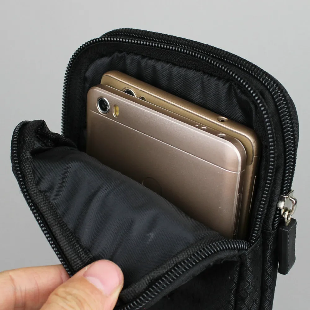 Features:Nylon Pouch Waist Bag Double Zip 3 Pocket Holster
