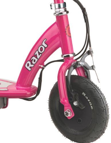 Features a hand operated rear brake, spring loaded kickstand, and a 8-inch pneumatic front tire for a smooth ride