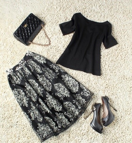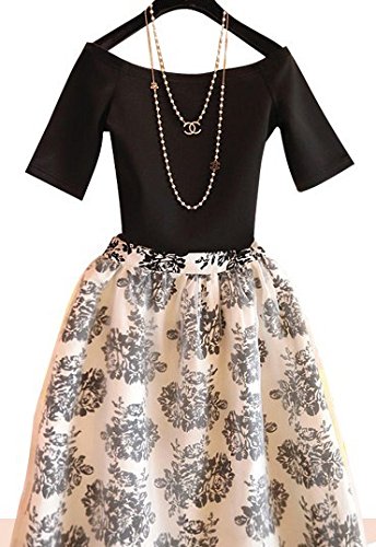 -. Title : (NananaHappy) レディース セットアップ ドレス 花柄 モノトーン シンプル 着やせ 発表会 フォーマル 結婚式 入学式 卒業式 入園式 卒園式 ママ 半袖 フレアー スカート 膝丈