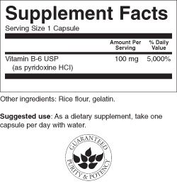 -. Feature : Swanson Premium / Swanson Vitamin B-6 (Pyridoxine) 100 mg 100 Caps / Per GMP guidelines set forth by the FDA, most products are formulated for 24 months from the date of manufacture. Liquids and probiotics are formulated for 12 months.