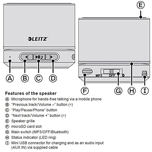 Leitz Mini Bluetooth Lautsprecher, Inkl. 1 Mini USB-Ladekabel mit Kopfhoreranschluss, 6 Std. Spielzeit, Kraftvoller Klang, WOW
