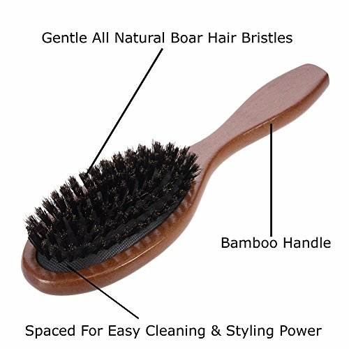 Professional Boar Hair Brush, Bamboo Handle For Men & Women. Soft Natural Gentle Bristles