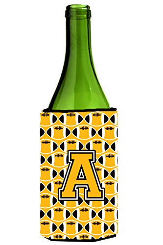 Letter A Football Black, Old Gold and White Wine Bottle Beverage Insulator Hugger CJ1080-ALITERK