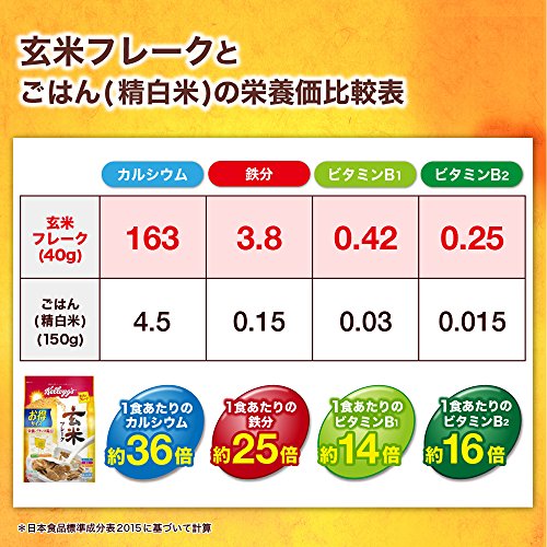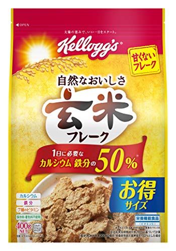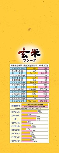 玄米を主原料として、サクサクおいしいフレークに仕上げたバランス栄養食品です。1食分(玄米フレーク40g+牛乳200g)で、ビタミンCをはじめとした7種のビタミンと鉄分、カルシウムを1日に必要な量の約50%摂ることができます