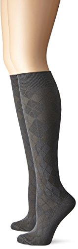 Anne Klein Women's Microfiber Rayon Argyle 2 Pack Knee High Sock, Charcoal, 9-11