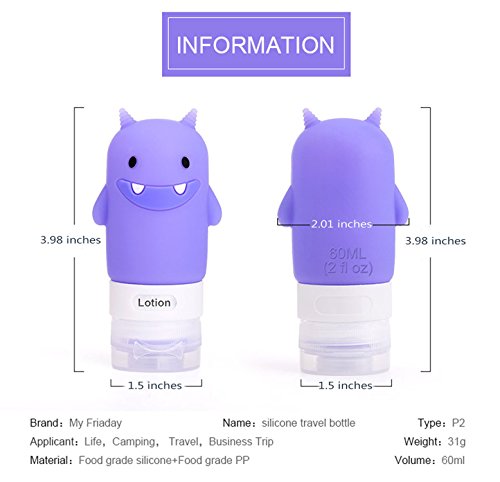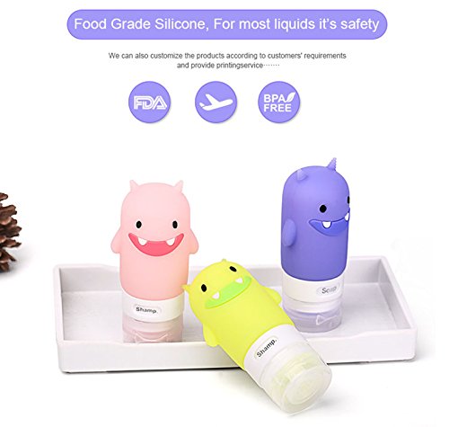 3-PACK Travel Bottle Set, Silicone Cute Shape Bottles with Zipper Bag,Approved Carried on Airplane