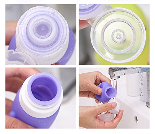 - Leak-proof design: The lid of the refillable bottle has 3 layers and the valve of cap has a silicone stretchy film to make the bottles won't leak out. No squeeze, no liquid come out, even upside down the bottle with the cap open. Wide mouth for easy refilling with small mouth for user friendly controlled flow.