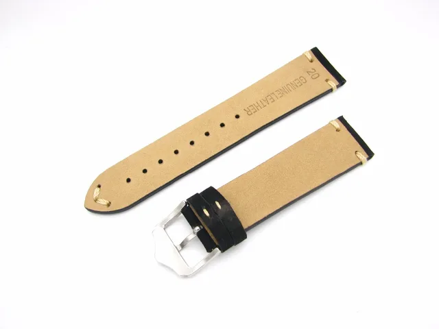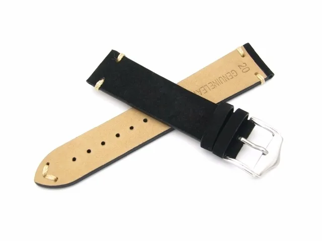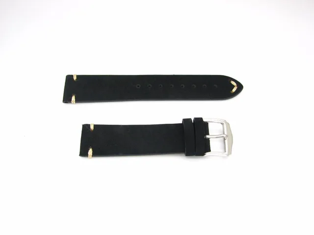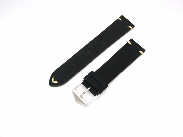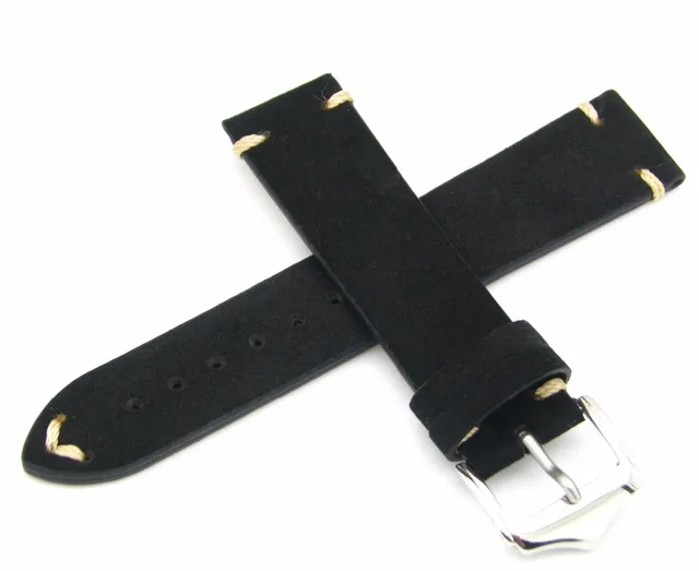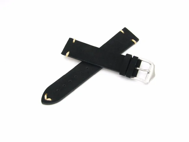 | [해외] 20 22 미리메터 새로운 남성 여성 정품 소 가죽 스웨이드 가죽 수제 스티치 블랙 시계 밴드 스트랩 벨트 실버 광택 핀 버클 걸쇠 |