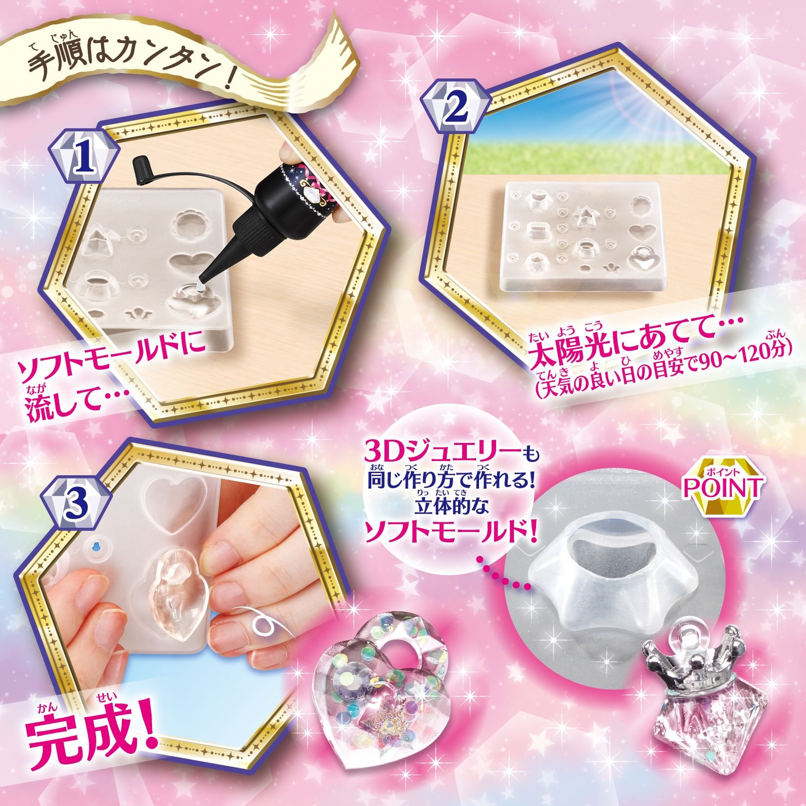 The DX specification of the Claire Jewelry N series that makes glitter and shining jewelry appears! Use authentic and safe water-soluble resin liquid and solidify with sunlight (ultraviolet light) to make authentic resin accessories.