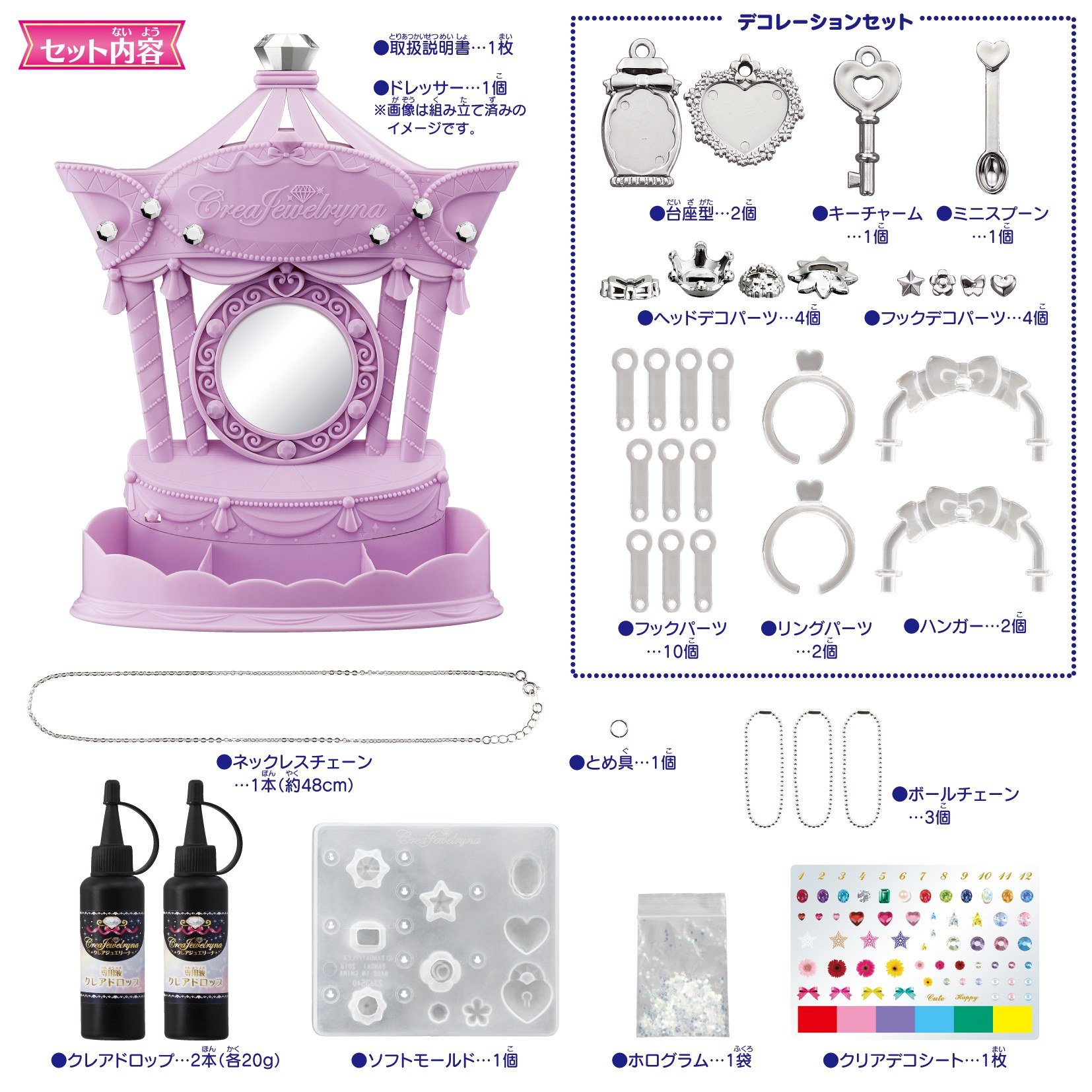 【Contents of set】 Dresser stand × 1, Decoration set × 2, Necklace chain × 1, Soft mold × 1, Cleare drop × 2, Clear deco sheet × 1, Ball chain × 3, Round can part × 1, Hologram × 1