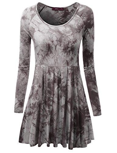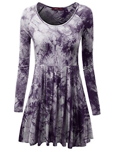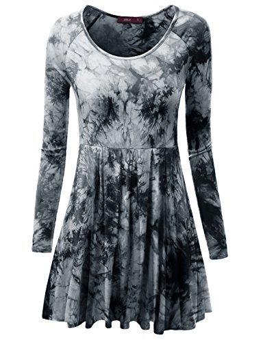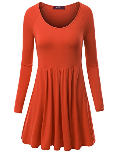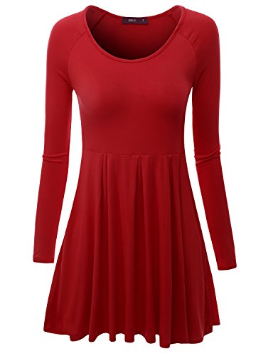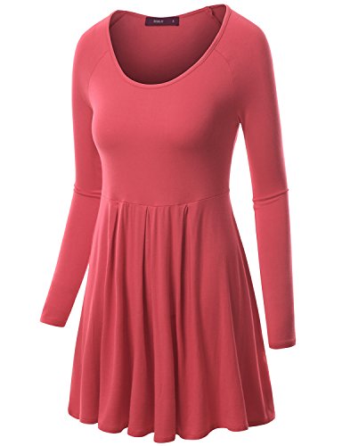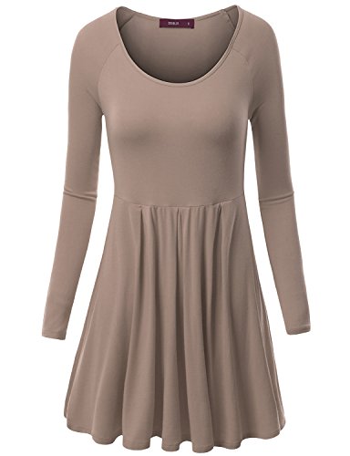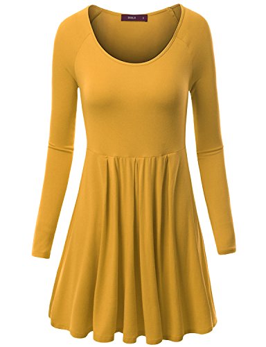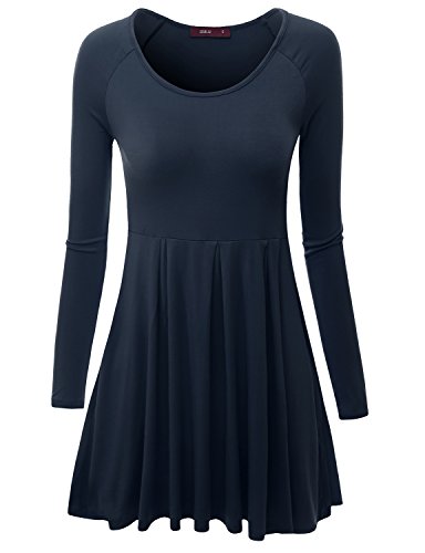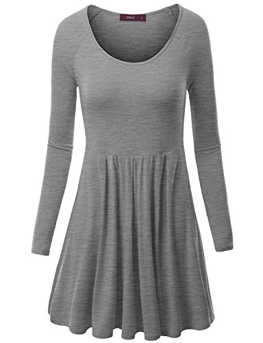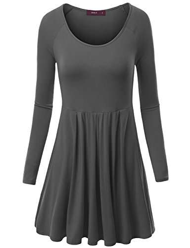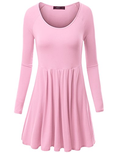 Doublju Womens Long Sleeve Round Neck Casual Tunic Top