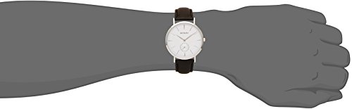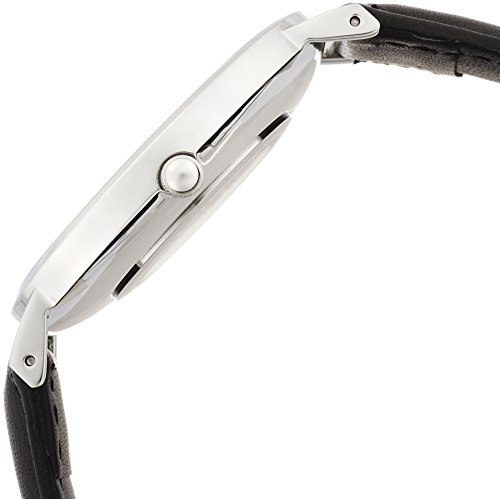 블루《기아나》 [블루기아나]BROOKIANA 라운드 슬림 초박형 36mm 스몰 세컨드 실버 화이트×블랙 레더 벨트 손목시계 BA3101-SWLBK