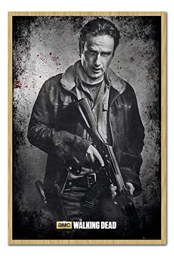 -. Title : The Walking Dead Rick Black & White Poster Magnetic Notice Board Beech Framed - 96.5 x 66 cms (Approx 38 x 26 inches)