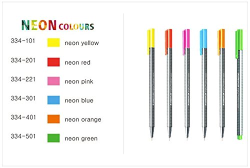 Triplus Fineliner Neon Coloring Pens in Case, 0.3mm, Metal Clad Tip, 6/PK, Assorted.