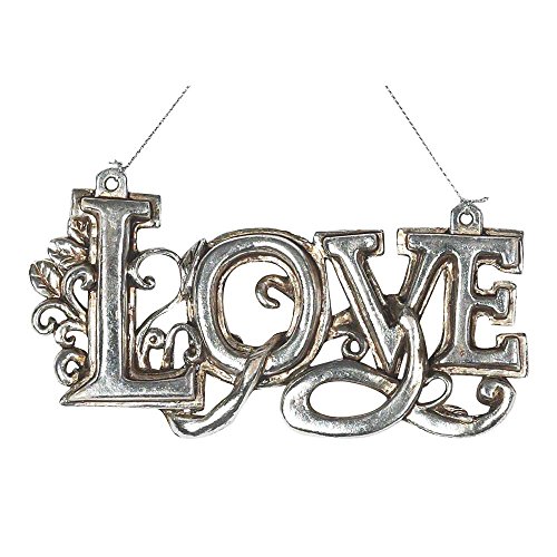 Love With Vine and Leaves Detail Antique Silver Tone 2.5 x 4.75 Resin Stone Christmas Ornament