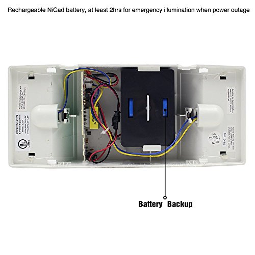 - Battery Backup: Comply with UL 924 Emergency Lighting and Exit Sign Regulations; built-in 3.6V 1000mAh rechargeable battery, more than 90mins continuous lighting for emergency after power failure, longer illumination, more reliable