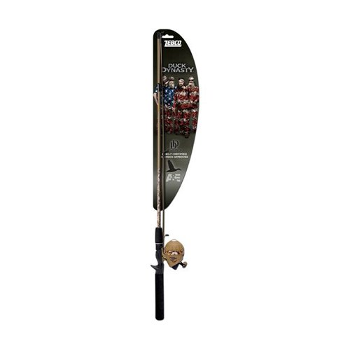 Studio : Green Supply Publisher : Green Supply Binding : Sports Product Description Zebco Duck Dynasty Spin cast Combo, 2 Pieces Features:- Dial Adjustable Drag - Stainless Steel Pick Up Pin - Quickset Anti Reverse- Right Hand Retrieve - Durable Glass Blank - Comfortable EVA Handle Specifications:- Type: Spin cast- Bearings: 0- Gear Ratio: 2.8:1- Inches Per Turn: 15"- Length: 5' 6" - Action: Medium Light- Guide Count: 4 Tip- Line Weight: 2 - 6 lbs. 0