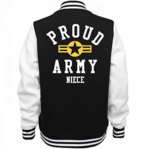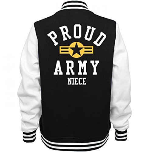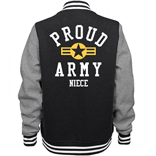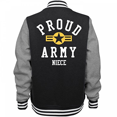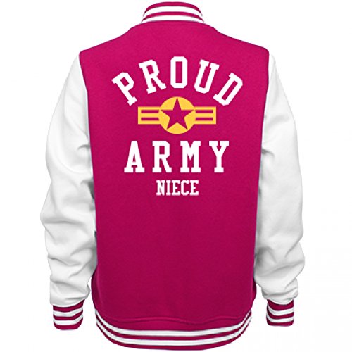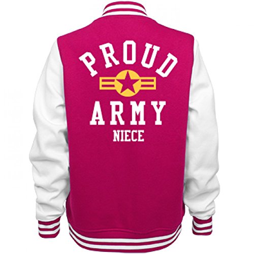 Product Description Is your family member fighting for our freedom? Show your military love and support for your guy or gal with this cute and cool "Proud Army Niece" letterman jacket. Your soldier is sure to love seeing you in this awesome fleece, sweatshirt coat. The traditional letterman jacket has been reworked in warm comfortable fleece, for a sideline winning look. 0