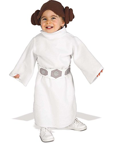 -. Feature : Costume includes white robe made of plush fleece fabric to keep baby warm and cozy / Attached character belt features velcro back closure / Headpiece features galactic princess leia's iconic buns / Available in three sizes newborn 0-6 months, infant 6-12 months, and toddler 12-24 months / Officially licensed star wars merchandise from rubies costume co.