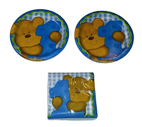 -. Title : Baby's 1st Birthday Blue Boy's Teddy Bear Bundle Plates (16) Napkins (16)