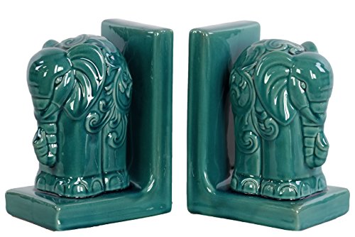 Urban Trends Ceramic Elephant Bookend, Turquoise, Set of 2