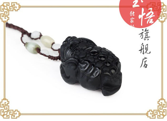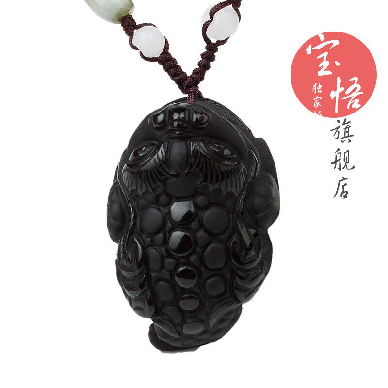 黑曜石金蟾保泰金蟾吊坠玉雕琉璃三蟾赐瑞赐福