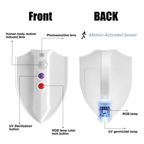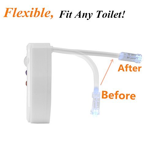 ★ PERSONALIZED SETTINGS: Night light has a different mode options. 8 colors, in turn, each color random 15 seconds, the entire 120 seconds circle, you can also choose the color by your own preferences. And our products are very easy to install, using PVC flexible arm, with a 180 degree bending angle. Apply to any toilet.