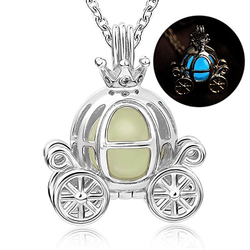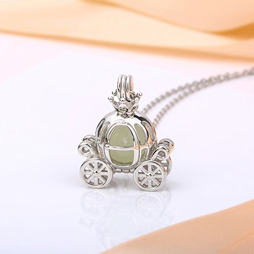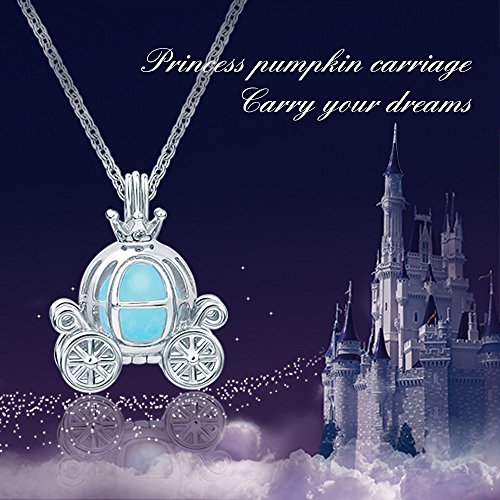 Sterling 925 Silver Princess Cinderella Pumpkin Carriage White Gold Pendants Necklace Jewelry Gift for Girls