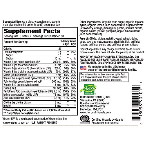 GUARANTEED GOODNESS: At Hero Nutritionals (creator of Yummi Bears), we guarantee all our multivitamins and dietary supplements for freshness, quality and effectiveness. In addition to Organics, Yummi Bears offers a complete line of functional vitamin options that provide optimal support such as sugar-free, vegetarian, brain, immunity and bone health varieties.